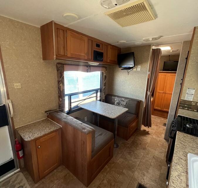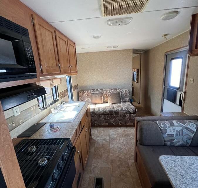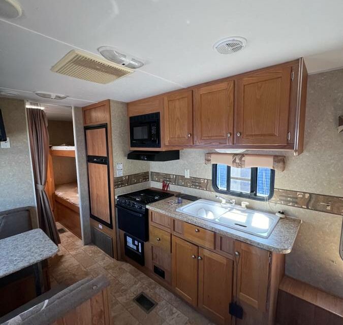 trailer is very very good condition used very little always was parked under a covered storage patio. It has a queen size walk around bed. Sofa sleeper, full dinette 4 bunkbeds at the back no leaks no spots no water damage very solid all original has all its working appliances. Never been smoked in no pets must see To appreciate clean, title, good tires, good awning, full hitch and sway bars road ready. Please call for viewing.
